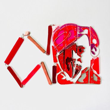 silver, pigment, acryl glass, pink ebony, nylon